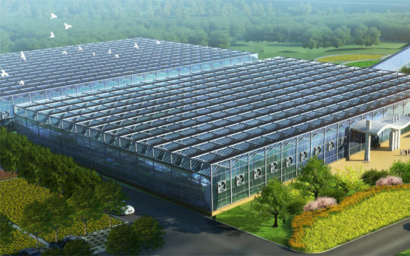 玻璃連棟溫室指以玻璃(單玻或者中空玻璃)作采光材料的溫室,屬于智能溫室大棚的一種 ,在栽培設施中,;連棟玻璃溫室作為使用壽命最長的一種形式, 適合于多種地區和各種氣候條件下使用。